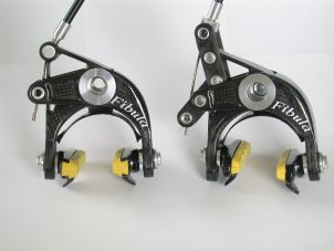 The Fibula braking system is an ideal combination of excellent braking properties and light construction based on carbon fibre technology. On the front wheel, brake power is intensified by a unique lever system with 1.5 to 1 ratio ensuring very high brake forces with a low operating force. The reduced ratio on the rear wheel brake gives a favourable distribution of the brake power. This braking system is particularly suitable for carbon rims because the high ratio compensates the lower friction values of the carbon rim flank.